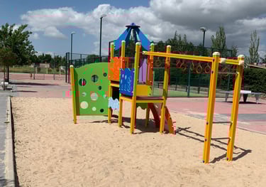 Espacio recreativo enfocado a los niños, que cuenta con juegos infantiles, se encuentra completamente al aire libre y tiene cerca las canchas de baloncesto y pádel.
